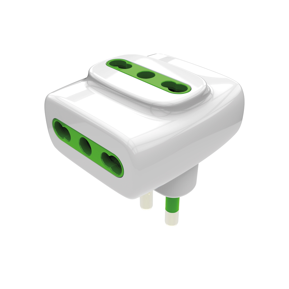 Adattatore Triplo Spina 16A+T con spina Centrale Colore Bianco