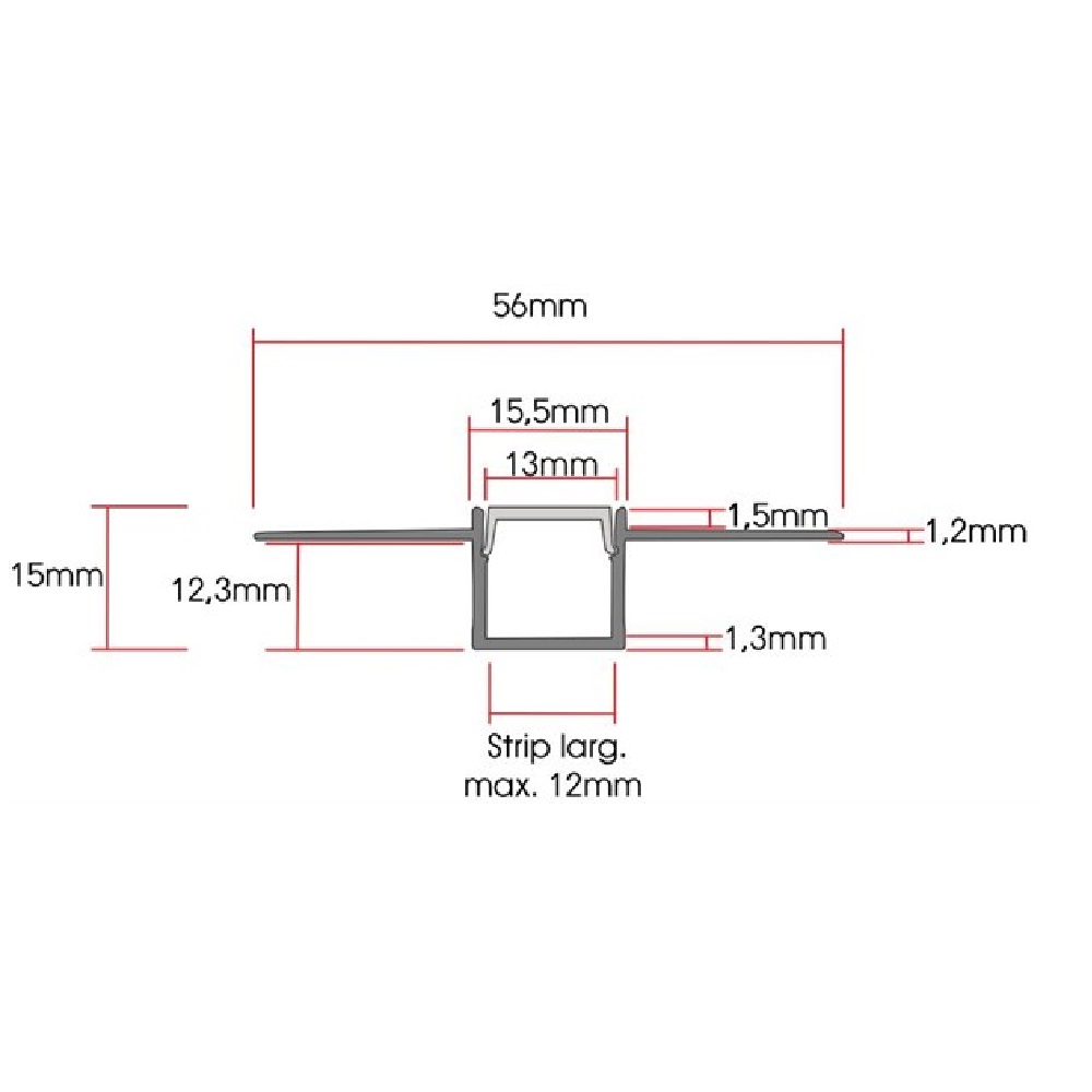 Dimensioni (AxBxH) 2000 x 15,5 x 15 mm